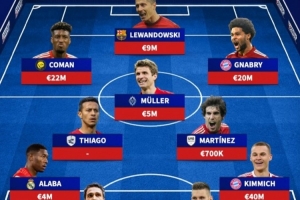 24直播网02月12日讯 拜仁将迎德国杯对决莱比锡,媒体回顾了双方7年前德国杯决赛的拜仁首发阵容。该队总身价当时为1.097亿欧元,如今格纳布里、基米希和诺伊尔仍在队,其余球员已转战他队或退役,身价也随职业生涯发生巨变。