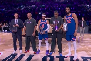 体育资讯2月15日讯洛杉矶全明星单项赛今日进行,第二项比赛是投篮之星,决赛由卡梅隆队对阵尼克斯队,率先登场的卡梅隆队神准命中4记四分球拿下38分,顶住压力的尼克斯队表现更加凶猛,他们各种狂轰乱炸直接抢下47分夺冠。