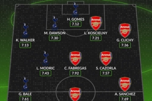24直播网02月20日讯 英超数据网站Whoscored盘点了自09/10赛季以来,阿森纳与热刺球员在英超场均评分最高的阵容。该阵容包括门将戈麦斯(热刺),后卫沃克、道森(热刺)及科斯切尔尼、克里希(阿森纳),中场贝尔、莫德里奇(热刺)与法布雷加斯、卡索拉、桑切斯(阿森纳),以及前锋范佩西(阿森纳)。