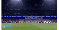 体育资讯02月26日讯 欧冠1/8决赛附加赛首回合,皇家马德里客战本菲卡,赛前,皇马球迷在伯纳乌拉起横幅,反对种族歧视。