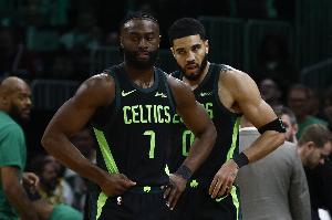 本场比赛,塔图姆出战27分钟,16中6拿到15分12篮板7助攻1抢断,正负值+20!杰伦·布朗出战33分19秒,投篮17中9,三分5中2,罚球6中4,得到24分7篮板7助攻2抢断。