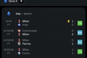 24直播网03月09日讯 在意甲米兰1-0战胜国米的比赛中,40岁的莫德里奇表现稳健,Sofascore评分为7.4。数据显示,他近7场比赛评分均超7分,场均高达7.8,状态持续出色,堪称米兰中场定海神针。