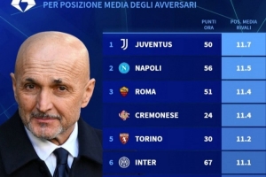 24直播网03月11日讯 根据德国转会市场的数据,意甲球队剩余10轮的赛程难度榜单出炉。尤文图斯以对手平均排名11.7位居榜首,意味着他们的赛程最为艰难。那不勒斯和罗马分列二、三位。而AC米兰和萨索洛则以10.7的排名,面临相对轻松的赛程。