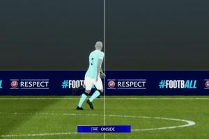 半场回放,转播给出了B席手球前皇马进攻划线图,皇马球员没有越位。