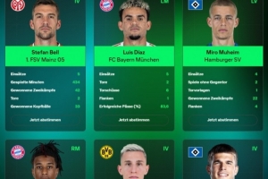 斯蒂芬·贝尔(中后卫,美因茨):出场5次,出场时间434分钟,赢得42次对抗,打进2球,赢得33次头球争顶