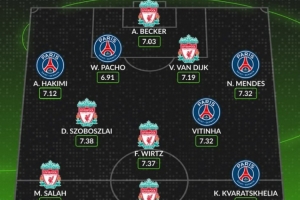 24直播网04月08日讯 欧冠淘汰赛前,Whoscored盘点巴黎与利物浦本赛季欧冠场均评分最高阵容。利物浦方面,阿利松、范戴克领衔后防,萨拉赫、索博斯洛伊等入选。巴黎则由阿什拉夫、帕乔、门德斯及克瓦拉茨赫利亚等球员构成主力。两队星光熠熠,实力对决一触即发。