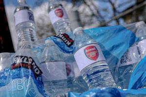 24直播网04月19日讯 曼城球迷因在看台上手持阿森纳队徽水瓶“吹瓶”嘲讽对手而走红网络。受此启发,有球迷在阿提哈德球场外售卖同款矿泉水,售价2镑一瓶,以此延续这一趣味嘲讽行为。