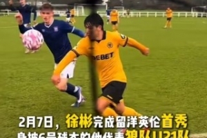 24直播网02月08日讯 中国球员徐彬于2月7日代表狼队U21队英超U21联赛首秀并打满全场。尽管球队3-4惜败,但足球中国官方发文,向他送上祝贺与鼓励,祝愿这位留洋新秀开启的职业生涯一切顺利。