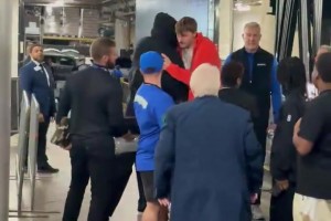 上一篇: 勒布朗·詹姆斯和库珀·弗拉格在勒布朗离开球场前拥抱...