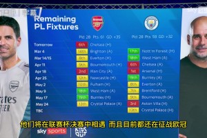 下一篇: 争冠白热化:剖析阿森纳与曼城的剩余赛程